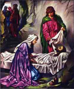 A soldier, at the suggestion of the priests who wished to make the death of Jesus sure, thrust his spear into the Saviour's side, inflicting a wound which would have caused instant death if he had not already been dead. From the wide incision made by the spear there flowed two copious and distinct streams, one of blood, the other of water. This remarkable fact was noted by all the beholders, and John states the occurrence very definitely; he says: "One of the soldiers with a spear pierced his side, and forthwith came there out blood and water. And he that saw it bare record, and his record is true; and he knoweth that he saith true, that ye might believe. For these things were done that the scripture should be fulfilled. A bone of him shall not be broken. And again another scripture saith, They shall look on him whom they pierced."