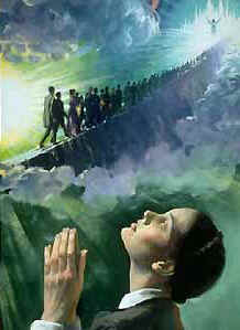 Ellen was happy. She gathered up her things and followed the angel. Soon they came to a steep stairway. As they started up the steps, the angel said: ' 'Keep your eyes looking upward. Others have climbed this stairway. Some of them looked down. They grew dizzy and fell."