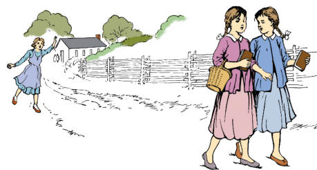 One day Ellen, Elizabeth, and another little girl were on their way home from school. An older girl was walking behind them. She was not a kind girl. She wanted her own way. She was angry and said cross words.