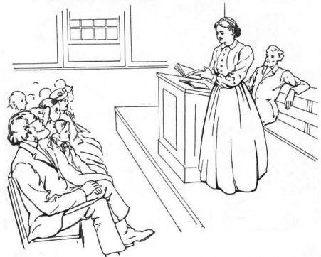 Soon there was a meeting. Ellen went to the meeting. The people wanted to hear her speak. She believed that Jesus would help her, so she began to whisper the message. In about five minutes her voice became clear and strong.