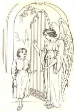 When Ellen came to the last step, the angel said: "Leave all your things here." He opened the door and told her to go in.