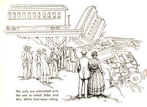 The baggage car was off the track, too; but it was not broken. The box of books was safe. Many people came to see the wreck.